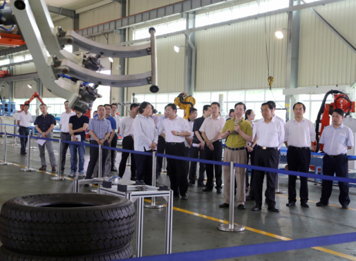 At first, the guests and the hosts arrived at the intelligent workshops. They overlooked the whole workshops when they walked along the visiting corridor at the second floor. As Chairman Wu guided the guests, he introduced Greatoo’s development, especially the company’s process of expanding the foreign market. Currently, the company has development four main high-end industries, including radial tire molds, hydraulic curing press, high precision numerical control machine and industrial robots, and set up subsidiaries in countries like India, Germany and USA, developing a new trend of international development.